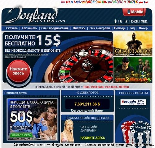 О Joyland (ЗАКРЫТО) Первое впечатление Не могу сразу сказать, что главная страница интернет-казино Joyland цепляет, как в русских казино, но полноценный русский увидеть в иностранном казино можно и сейчас не так часто. Даже в заведениях от Playtech. Изучаю далее и вижу, что далеко не все страницы сайта переведены на русский, но это мен уже не остановит. Софт и безопасность Joyland Казино с полноценным списком игр от Playtech и полным набором преимуществ софта этого производителя: скачиваемая версия, стопроцентная гарантия честной игры, узнаваемый игроками интерфейс с множеством опций для контроля игры. Поддерживаются все основные (да и экзотические) опции депозита и вывода денег, в том числе WebMoney, Skrill и пластиковые карты. Доверия внушает лицензия Гибралтара, упоминание которой я увидел на странице Joyland. Эта юрисдикция является одной из самых серьезных в мире гемблинга для лицензирования онлайн-казино и заведение точно должно быть в Рейтинге лучших казино для игроков на деньги. Бонусы и акции онлайн-казино Программа поощрения игроков достаточно интересна и для западного заведения щедра. Кроме крупного бонуса на первый депозит всем новым игрокам предлагается бездепозитный бонус. Хорошая возможность попробовать игру в Joyland не рискуя своими кровными. На странице бонусов упоминаются и бонусы на второй депозит, за депозит через определенные средства платежа и так далее. Игры казино Стандартные игры от Playtech от французской рулетки и покера до слотов. Большой выбор видеопокеров не оставит равнодушными тех кто уважает эту игру. Среди слотов попробуйте «Beach Life», «Mega Jacks», «Around the World» и «Gold Rally». Общее количество игр казино в Joyland превышает 80. Удачи за столами. Присоединяйтесь! |