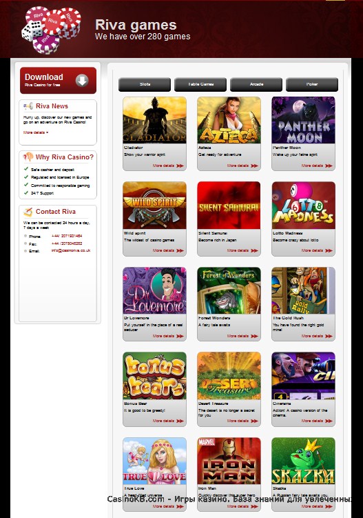 На каждой странице онлайн-казино Riva игроков встречает один из героев комиксов Marvel. И это понятно, ведь слоты от Playtech (именнто этот софт в основе Riva) на эту тему весьма популярны у игроков со всего света. Возможно, Великолепная Четверка для клиентов из России ничего и не значит, но вот Кинг-Конга знают все.